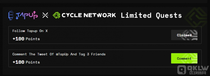 Cycle Network還有外部聯合活動,最新活動是與 Tapup項目的聯合活動。用戶完成任務后,不僅能獲得Points積分,還能參與Tapup的U獎池。另外,通過邀請好友參與,用戶可以賺取更多的Points積分。