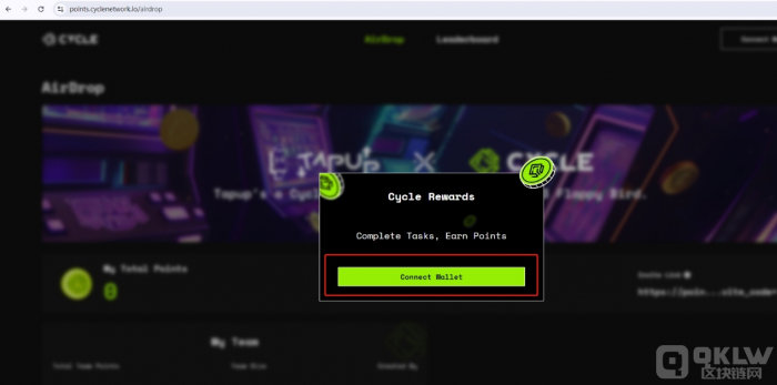 1、訪問Cycle Network Points空投網站,鏈接EVM錢包(如MetaMask),并且簽名;