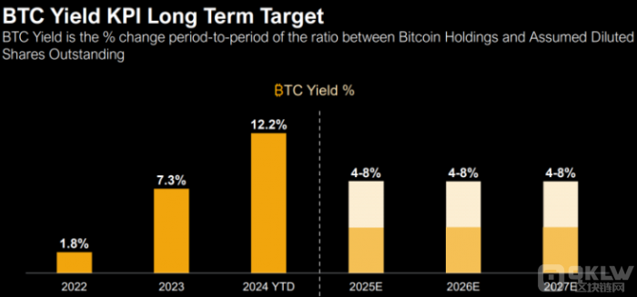 今年迄今,微策略的“Bitcoin收益率”達到了12.2%,公司預計未來三年每年將實現4%至8%的增長。