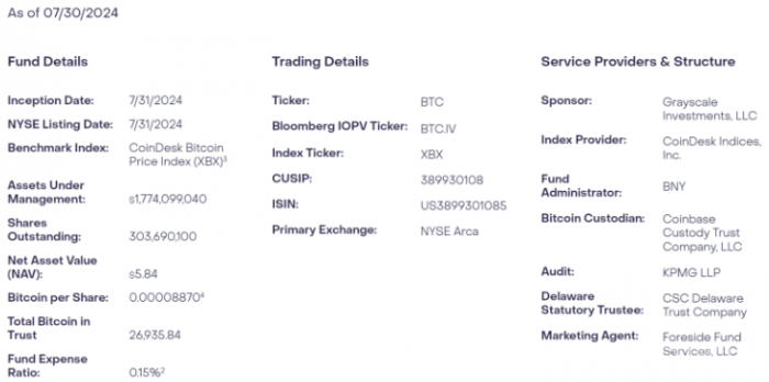 灰度Bitcoin信托GBTC在7月30日大跌超過11%,市場一度陷入恐慌。此次波動主要是由于GBTC分拆了10%的資產(chǎn)至新成立的迷你信托BTC。根據(jù)灰度官方網(wǎng)站的數(shù)據(jù),灰度迷你信托BTC在7月30日的資產(chǎn)管理規(guī)模為17.7億美元,并于7月31日正式上市。