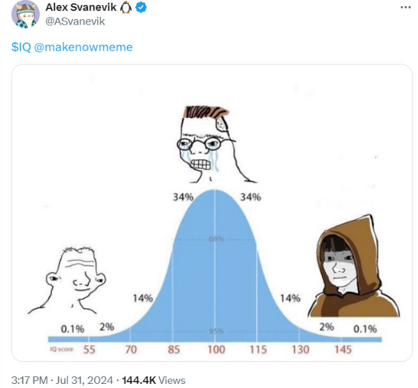 連鎖分析平臺(tái)Nansen的首席執(zhí)行官Alex Svanevik也參與了這一行動(dòng)。他于7月31日在makenowmeme上推出了一款名為IQ的模因幣,并表示自己正在“測(cè)試朋友開發(fā)的一項(xiàng)技術(shù)”,同時(shí)敦促追隨者不要購買。