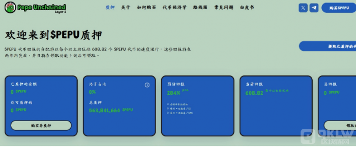 一旦購買了$PEPU,你還可以通過其質(zhì)押計(jì)劃立即增長你的持有量,目前的年化收益率(APY)高達(dá)287%。