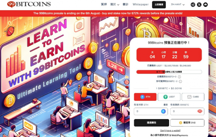 在這股BRC-20熱潮中,一些投資者將目光投向了新興的99BitcoinsTokens。這個與久負盛名的99Bitcoins教育平臺相關的Tokens,目前正處于預售的最后階段。預售將于8月6日結束,并計劃于8月8日進行大型DEX上市。