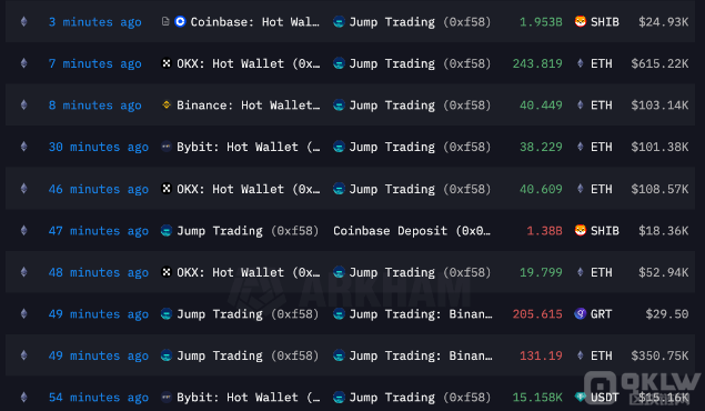 與此同時,Jump Crypto 似乎正在進行大規模清算。據 Arkham Intelligence 的數據,自8月3日以來,Jump Crypto 相關地址流入約3億美元,大部分資金來自交易所錢包。同一時期,交易所錢包流出約8000萬美元,主要流向 Coinbase,Gate.io,某安等交易所。