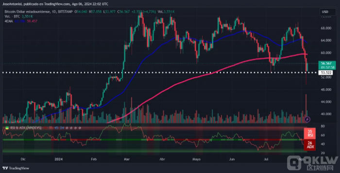 “死亡交叉”是指50日簡單移動平均線(SMA)跌破200日移動平均線(SMA),這一現象在技術分析中被視為潛在的看跌信號。當前,Bitcoin的50日移動平均線為62,488美元,而200日移動平均線為61,664美元,以Bitcoin現價56,837美元計算,這一技術模式的形成將引發市場廣泛關注。