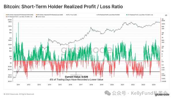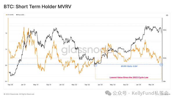 如果我們查看短期持有者的盈利供應(yīng)百分比,我們可以看到,只有7%的供應(yīng)處于盈利狀態(tài),這與2023年8月拋售潮中的情況類似。