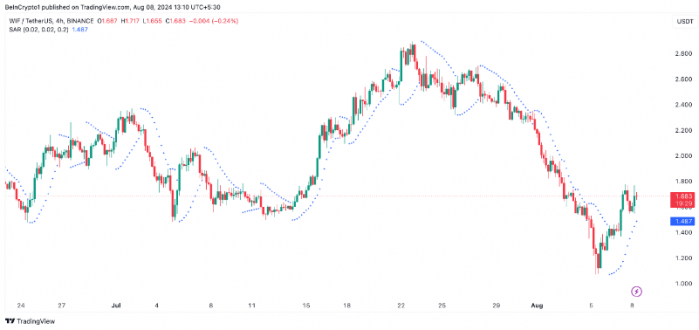 截至發(fā)稿時(shí),WIF的交易價(jià)格為1.70美元。從周三創(chuàng)下的高點(diǎn)1.77美元回落后,WIF的價(jià)格略微下跌了3%。盡管如此,市場(chǎng)的整體趨勢(shì)仍然看漲,WIF有望維持其上漲勢(shì)頭。