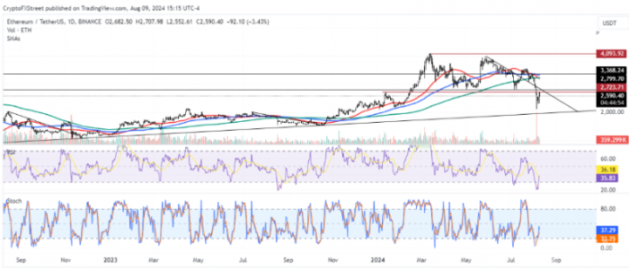 從長遠來看,ETH可能會在未來幾周內沿著趨勢線逐漸回升,測試2000美元心理水平附近的底部,然后反彈。短期內,ETH可能在2548美元附近波動,交易者面臨約2440萬美元的清算風險。