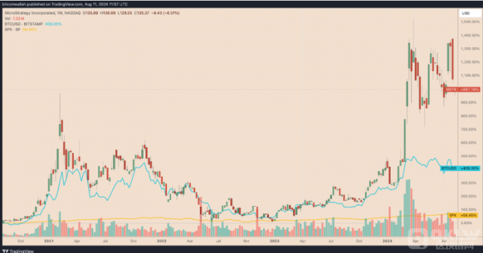 自2020年8月10日以來,MicroStrategy開始將Bitcoin(BTC)作為主要儲備資產,成為第一家接受這種crypto的上市公司。四年后,該公司的這一戰略已經取得了巨大的成功,利潤超越了沃倫·巴菲特領導的伯克希爾·哈撒韋公司。