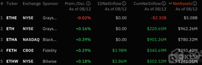 同時(shí),VanEck的ETHV也首次出現(xiàn)了292萬(wàn)美元的凈流出。