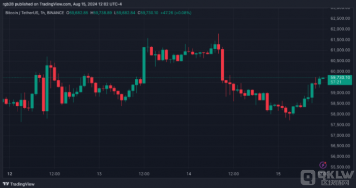 截至撰寫本文時,Bitcoin的交易價格為59,730美元,過去24小時內(nèi)上漲了1.4%。