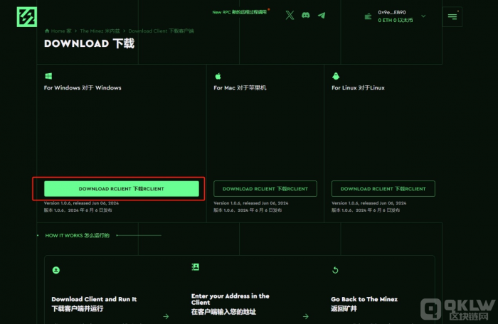 3、點擊DOWNLOAD RCLIENT,下載并安裝客戶端(根據自己電腦系統來選擇)。