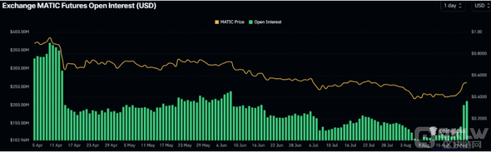 CoinGlass的數據顯示,Polygon期貨的未平倉合約也在不斷增加,OI從周一的1.1474億美元上升至周四的2.0939億美元,達到了6月中旬以來的最高水平。這表明市場資金流入積極,新的購買活動正在推動價格上漲。