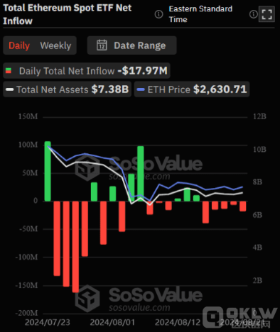 與Bitcoin現貨ETF不同的是,美國的以太幣現貨ETF連續5個交易日出現資金流出,21日的凈流出額為1797萬美元?;叶菶thereum信托基金(ETHE)是主要的流出來源,單日凈流出金額達到3114萬美元。