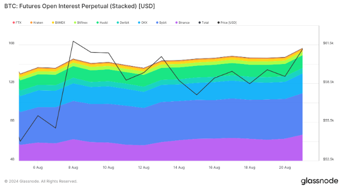 分析顯示,隨著Bitcoin價格從59,000美元突破至60,000美元以上,交易者們開始開設更多的多頭頭寸,預計價格將繼續上漲。永續期貨合約的持倉量也同樣出現了增長,顯示出投機交易者的濃厚興趣。