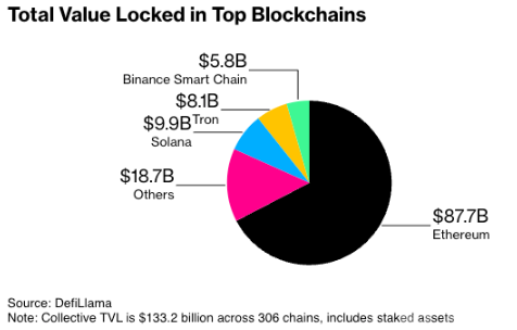 根據DefiLlama的數據,目前市場上已有306條Blockchain,總鎖倉價值達到1,332億美元,但其中僅有五條鏈占據了86%的市場份額。這些數據使Tether的決策更加堅定。