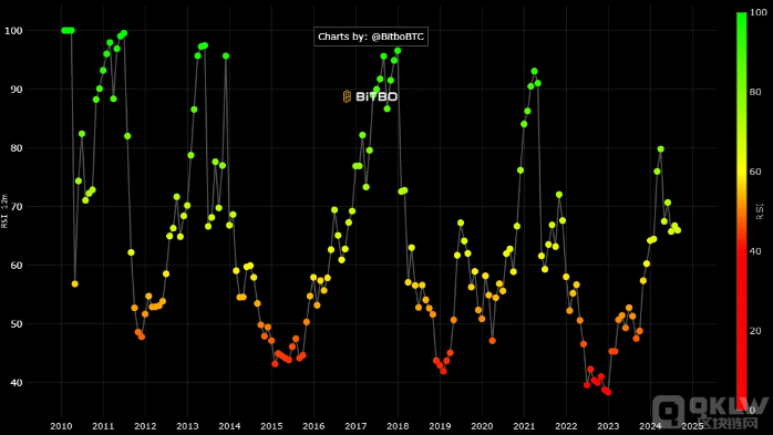 根據Bitbo數據,Bitcoin的RSI指數為66.11。今年3月,BitcoinATH達到73,679美元時,RSI飆升至79.79。