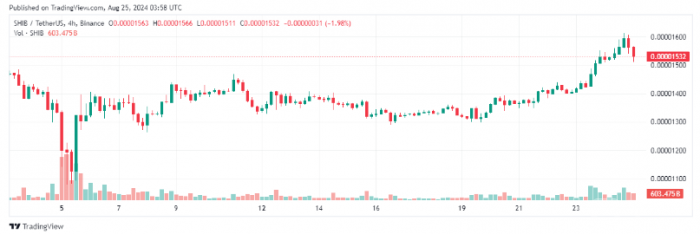 截至目前,SHIB的交易價格為0.000015美元,盡管在過去24小時內上漲了1%,但距離0.00005美元的目標仍有一段距離。