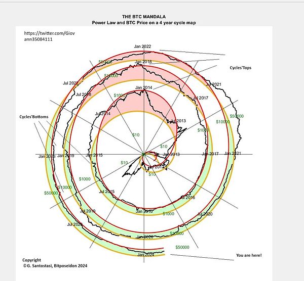 周期的峰值可能比我們預期的要大,而不是像過去那樣下降,它可能會像一些早期的峰值一樣大。但這些只是“局部”效應(它們涉及此時此刻的變化),而不是長期軌跡。正如我多次說過的,Bitcoin遵循冪律這一事實是健康和力量的標志,我們希望支持這一點。但就理解BTC的規模不變性而言,它們不會改變BTC的長期軌跡,因為沒有證據表明ETF從規模角度理解時與所有其他事件不同。也許我需要對此進行深入研究,并證明BTC的資金流入與BTC價格具有某種雙對數關系,并表明它像價格本身一樣具有規模不變性,但目前這是我的直覺和理解規模不變的系統建議。