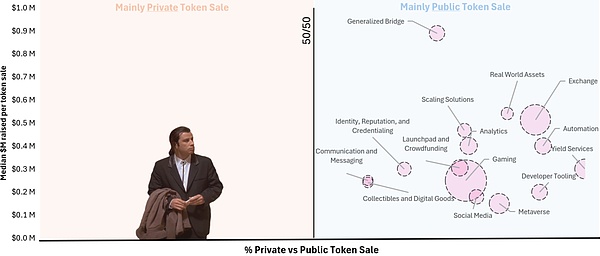 今年以公售的方式進行Tokens發行占據主導地位,占年初至今所有Tokens發行的81%。甚至沒有一個賽道私募的項目能比公售的項目多,這表明公售受到市場強烈青睞。