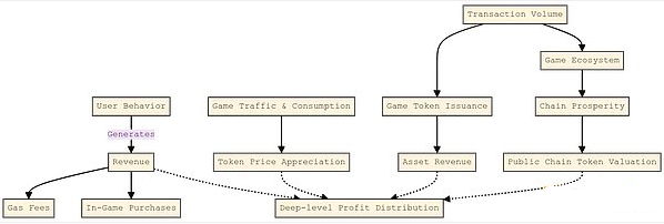 Web3游戲的經濟模式復雜多變。如果一個高質量的游戲不能帶來切實的經濟收益,其對開發者的吸引力將大打折扣。當前游戲項目與公鏈之間的關系主要體現在流量和收益上。游戲項目依賴公鏈提供的流量,而公鏈則通過吸引優質游戲項目來獲取用戶增量。