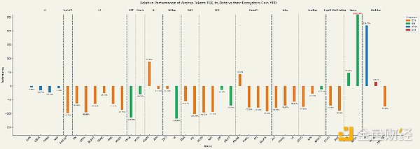 空投Tokens因其“只跌不漲”的價格走勢而臭名昭著。截至2024年8月25日,下面我認為被炒作得最多的47個空投事件中,只有11個價格高于TGE(Tokens生成事件),平均回報率為49.56%(不包括BONK)。與此同時,價格低于TGE的36個空投Tokens的平均跌幅為62.15%。現在,一些Tokens的價格確實有所上漲,從TGE到ATH的平均漲幅為162.23%(不包括BONK)。然而,在這些Tokens中,ATH后的平均回調率為70.89%。雖然自ATH回調下行也是一種正常的市場狀況,但令人擔憂的是,其中許多Tokens在幾個月內竟顯示出如此大幅的下跌。