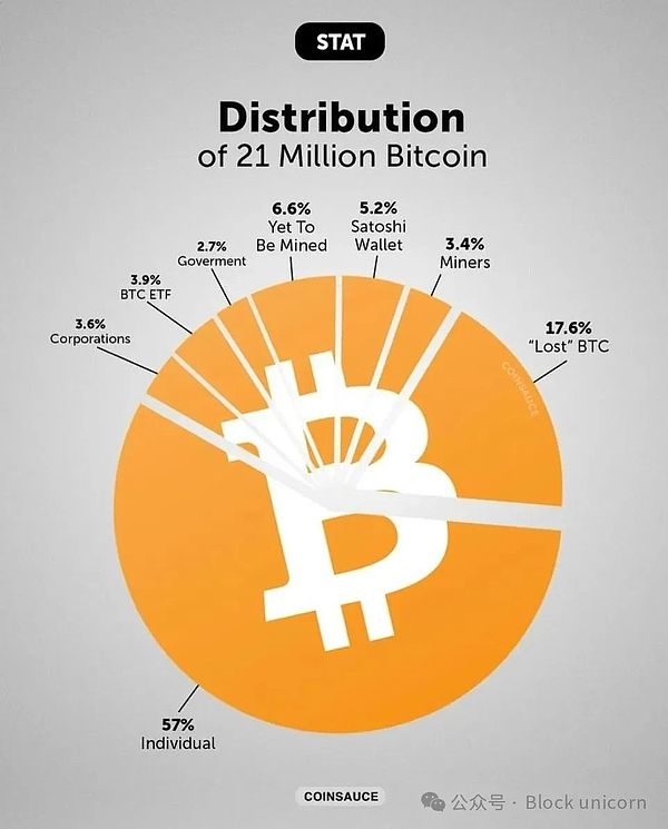 人們通常認為,與Ethereum相比,Bitcoin更多地被機構采用。然而,數據顯示情況并非如此,Bitcoin主要由個人投資者驅動,57%的供應量由個人持有,而只有9.7%由機構(包括礦工)持有。我對“個人投資者”的定義是非專業投資者和個人,他們更有可能因為新市場的投機性質而被轉化為Bitcoin的應用用戶。