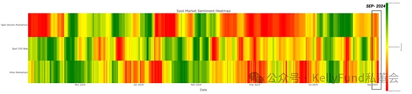 最后,我們評估Bitcoin的價格動量。我們可以看到,該指標(biāo)在一定程度上逡巡不進,8月正值和負(fù)值均有。這與之前的兩個指標(biāo)形成了鮮明對比——另兩個指標(biāo)在同一時期都為負(fù)值。
