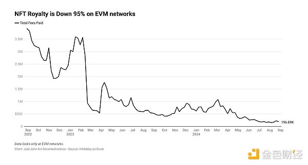 這種模型很有趣,因?yàn)樗鼮閯?chuàng)作者提供了繼續(xù)從作品中獲得版稅的方式,并建立有意義的社區(qū)。相比之下,2024年第二季度的meme幣季節(jié)則由名人所推動(dòng),他們常常談?wù)撟约旱腡okens,而這些Tokens卻在幾周內(nèi)暴跌了90%。