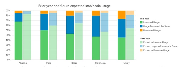 調查結果很明確:在接受調查的國家中,非Crypto用途占穩定幣使用模式的很大一部分。