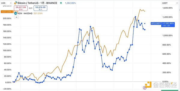 圖表:加密資產(chǎn)與美股波動(dòng)方向高度一致