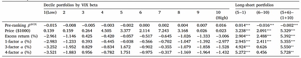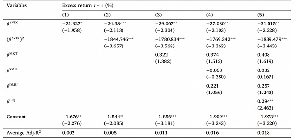本文的主要研究問題是:VIX的beta因子是否在Crypto的橫截面回報中定價。beta估計表明單個Crypto回報對特定風險因素的敏感性。對于每種Crypto,使用時間序列回歸模型來估計其對選定風險因素的敏感性。公式如下: