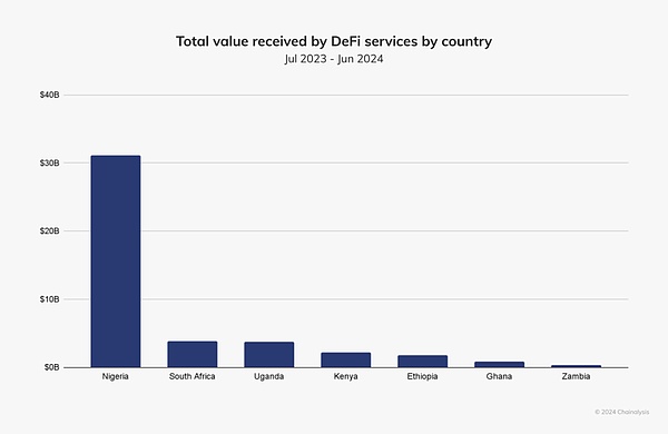 近年來,尼日利亞已成為Crypto采用領域的全球領導者,這得益于應對經濟挑戰的創新用例。在Chainalysis團隊的全球采用指數中,該國總體排名第二,在2023年7月至2024年6月期間,該國接收了價值約590億美元的Crypto。