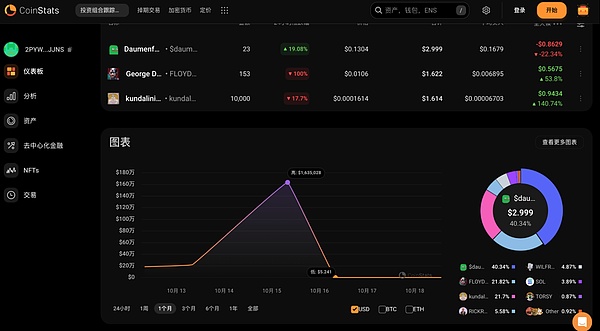 通過Coinstats分析該錢包地址portfolio,這類多半是臨時錢包,沒有其他重倉的資產