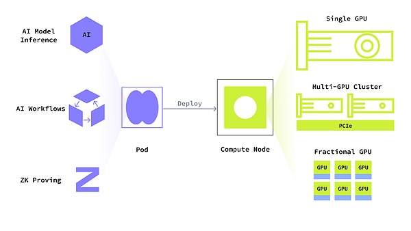 它基于DePIN(去中心化基礎設施網絡)協議,允許GPU所有者自由地將其閑置計算資源提供給網絡,而用戶可以通過簡單的API/SDK訪問這些資源,輕松運行AI模型、ZK證明等復雜任務。