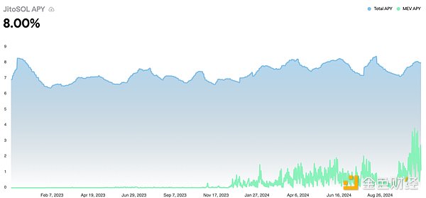 SOLliquidstaking(以JitoSOL為例)APY的總收益和MEV收益 來源