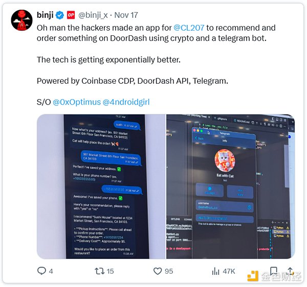 為什么我們關注這一點?關于TruthTerminal和GOAT的討論已經很多,我在這里就不再重復了,但可以明確說的是,當AI代理在鏈上互動時可能實現的種種瘋狂功能,已經不可逆轉地進入了現實(而且在這種情況下,代理甚至還沒有直接在鏈上采取行動)。