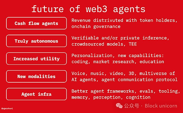 目前,我們正處于類(lèi)似于2016年Ethereum早期實(shí)驗(yàn)的階段。但到明年中期或后期,我們可能會(huì)看到代理處理復(fù)雜任務(wù)、自動(dòng)化流程并創(chuàng)造可觀(guān)的現(xiàn)金流。用機(jī)器人取代人類(lèi)工作是不可避免的——不過(guò)至少你可以擁有它們的Tokens。