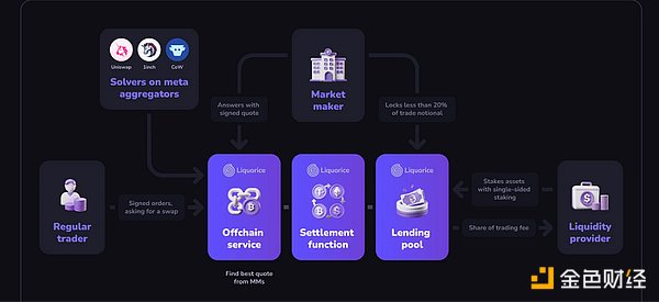 位于應用層下方,用戶通過連接錢包到dApp并請求報價來滿足交易意圖。這里的「意圖」指的是用戶期望的最終交易結果(即輸出),而非交易的具體執行路徑。