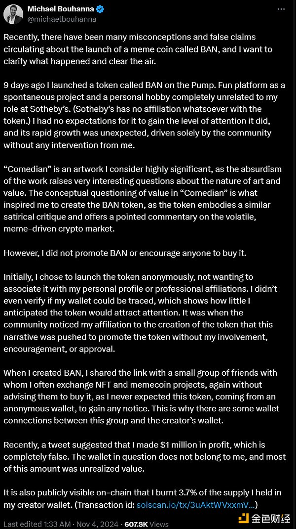 2024年11月21日,TRON創始人、HTX擁有者JustinSun成為頭條新聞,他以620萬美元購入了MaurizioCattelan的爭議性作品《Comedian》,并吃掉這幅作品。然而,圍繞$BAN迷因幣的投機興奮情緒很快開始減退。到2024年11月29日,$BAN的市值已大幅下降至1.34億美元,顯示出投資者情緒的變化以及圍繞該幣的敘事可能達到飽和。流行文化迷因:$CHILLGUY