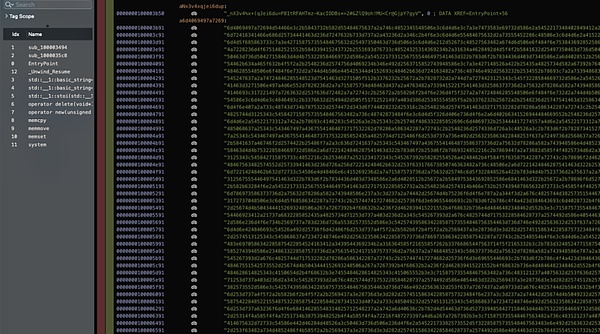 通過靜態反匯編分析,下圖為該二進制文件的入口代碼,用于數據解密和腳本執行。