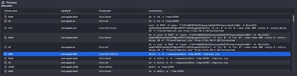 在虛擬環境下動態執行該惡意程序并分析進程,下圖為惡意程序采集本機數據進程和發送數據到后臺的進程監控信息。