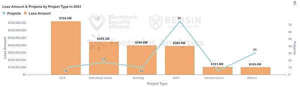 2024年,鏈上黑客攻擊活動、項目方RugPull事件次數均較2023年有了明顯下降,但損失金額仍在增加,并且釣魚攻擊更加猖獗。損失最高的攻擊手法依然為私鑰泄露。造成這一轉變的主要原因包括: