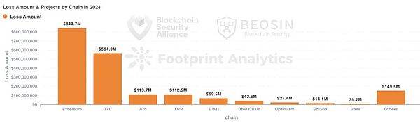 Bitcoin網絡損失排在第2位,單次安全事件損失達到了2.38億美元。第三位的是Arbitrum,總損失約為1.14億美元。