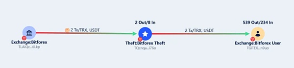 2024年2月23日,知名鏈上偵探ZachXBT通過其分析工具披露,BitForex的熱錢包出現了約5650萬美元的資金流出,并且在這一過程中,平臺暫停了提款服務。資金分析