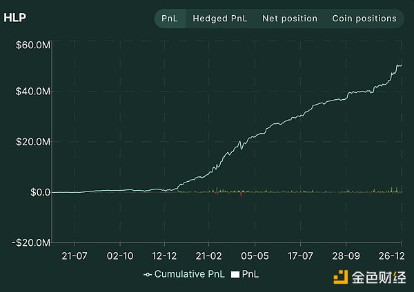另外值得一提的是,Hyperliquid目前收入中流向HYPETokens的比例為54%,這個值仍有進一步上升的空間。因為機制原因,HLP在2023年7月至今BTC漲幅超過200%的牛市中,一直以USDC為抵押物持有了大量的Crypto空頭頭寸,盡管HLP本身的策略得當,難得的保持了盈虧平衡,但是仍然需要付出年化30%以上的APR用于留住HLP內資金。