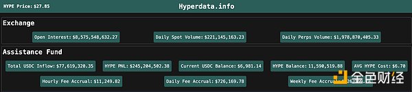 最近一個月Hyperliquid合約收入=1547億美元*0.0225%=3480萬美元,其中約54%進入AF用于回購HYPE,回購HYPE金額=1879萬美元,對應年化凈利潤為2.255億美元。