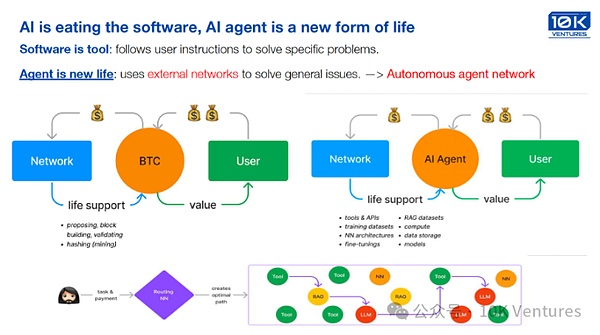 短期內(nèi),賦予Agent更便捷的加密支付的能力,足以擴展它們的行動范圍。從中長期來看,基于加密網(wǎng)絡(luò)的數(shù)字身份、無許可協(xié)議、去中心化應(yīng)用,以及智能合約賦予的能力,將使Agent能夠在數(shù)字世界中自主運作,與人類和其他Agent合作、競爭、博弈。加密網(wǎng)絡(luò)不僅為Agent提供了自主行動的基礎(chǔ),也為未來人機協(xié)作的經(jīng)濟模式開辟了新的可能性——當Agent能夠自主參與經(jīng)濟活動,這一發(fā)展將為社會帶來巨大的變革。(以上是我們LP王超哥,寫得太好了,我得把原文放上來。)
