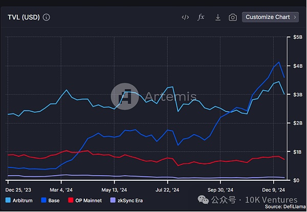 在我們10月的月報中,我們曾經重點call過Base生態的崛起。過了兩個月后,無論是DAU還是TVL,Base目前都大幅領先其他Ethereum生態。