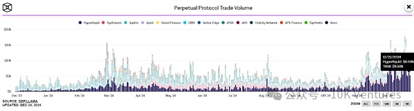 受限于原來鏈上衍生品賽道本身市場規模較小,得益于Hyperliquid在11月的騰飛,11月dex/cexfuturestradingvolume有了顯著的提升,一己之力將市占率從4%提升至8%。